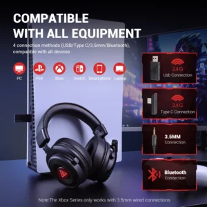 3 connection modes with 4 connection methods (USB/Type C/3.5mm/Bluetooth), it can be easily connected to all devices such as PC, PS4, PS5, Switch, Laptop, smartphone, Xbox, etc.